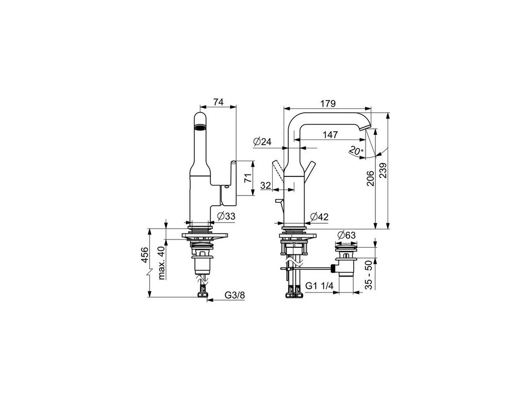 | Ovládání výpusti: | Táhlo |