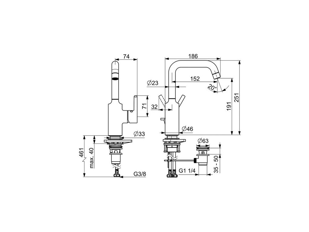 | Ovládání výpusti: | Táhlo |