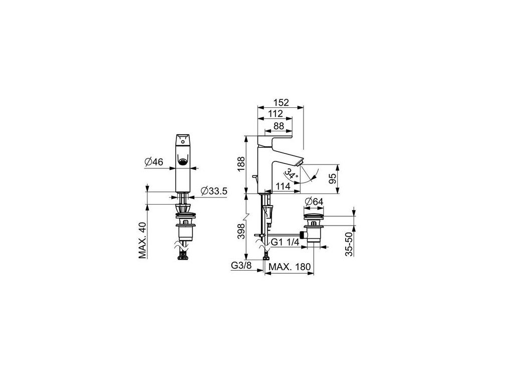 | Ovládání výpusti: | Táhlo |