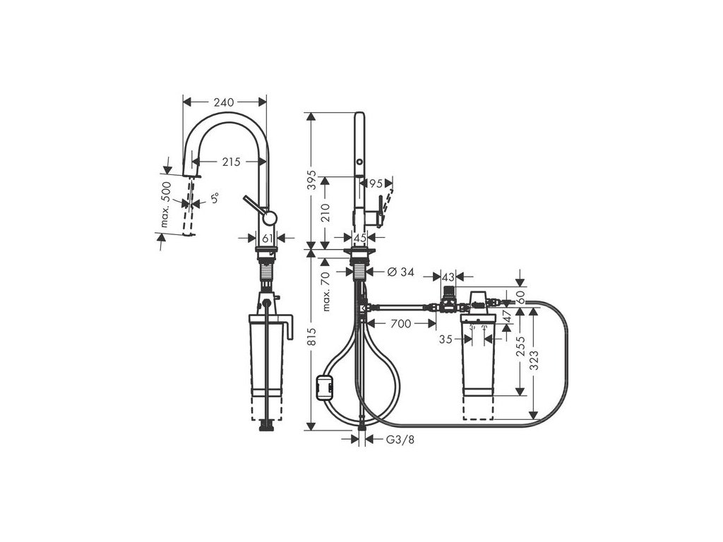 Hansgrohe Aqittura Baterie dřezová s výsuvnou koncovkou a filtrací, matná černá 76801670