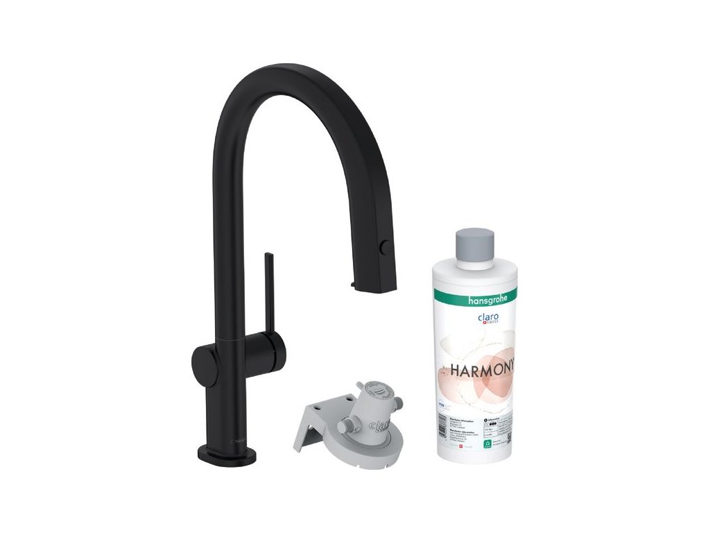 Hansgrohe Aqittura Baterie dřezová s výsuvnou koncovkou a filtrací, sBox, matná černá 76800670