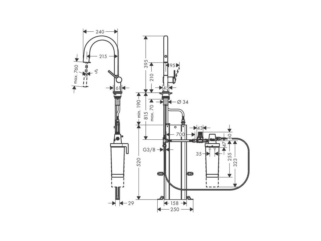 Hansgrohe Aqittura Baterie dřezová s výsuvnou koncovkou a filtrací, sBox chrom 76800000