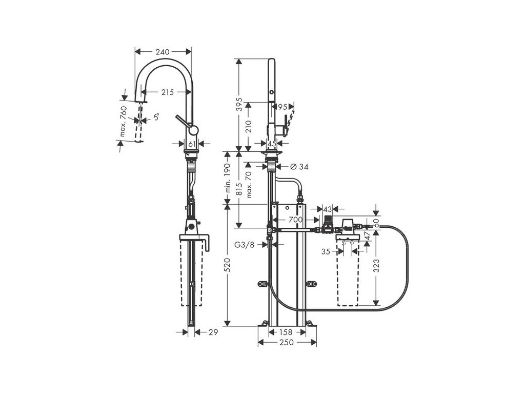 Hansgrohe Aqittura Baterie dřezová s výsuvnou koncovkou a filtrační hlavicí, sBox, chrom 76826000