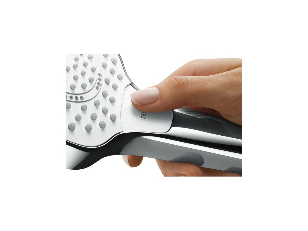 Průkopnická ergonomie i design: rukojeť dokonale sedne do dlaně. Ruční sprcha se nezahřívá, protože voda proudí jen vnitřním pláštěm. Oplachovací sítko na nečistoty spolehlivě zachytí veškeré pevné části přítomné v přiváděné vodě a zajišťuje tak dlouhou životnost sprchy. Vhodné i k průtokovým ohřívačům vody.