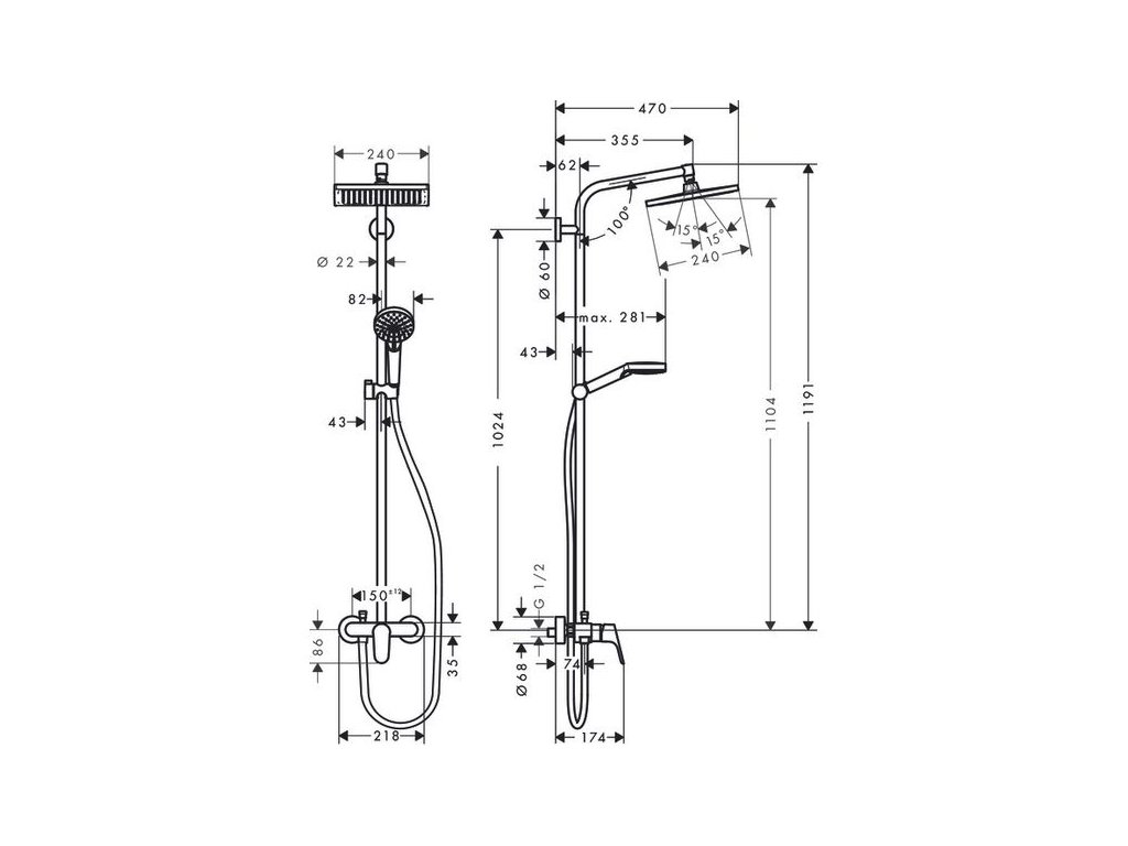 Hansgrohe Crometta E Showerpipe 240 1jet s pákovou baterií 27284000