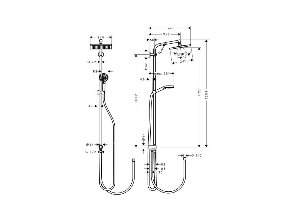 - obsahuje: horní sprcha, ruční sprcha, sprchová hadice, jezdec, přípojka hadice