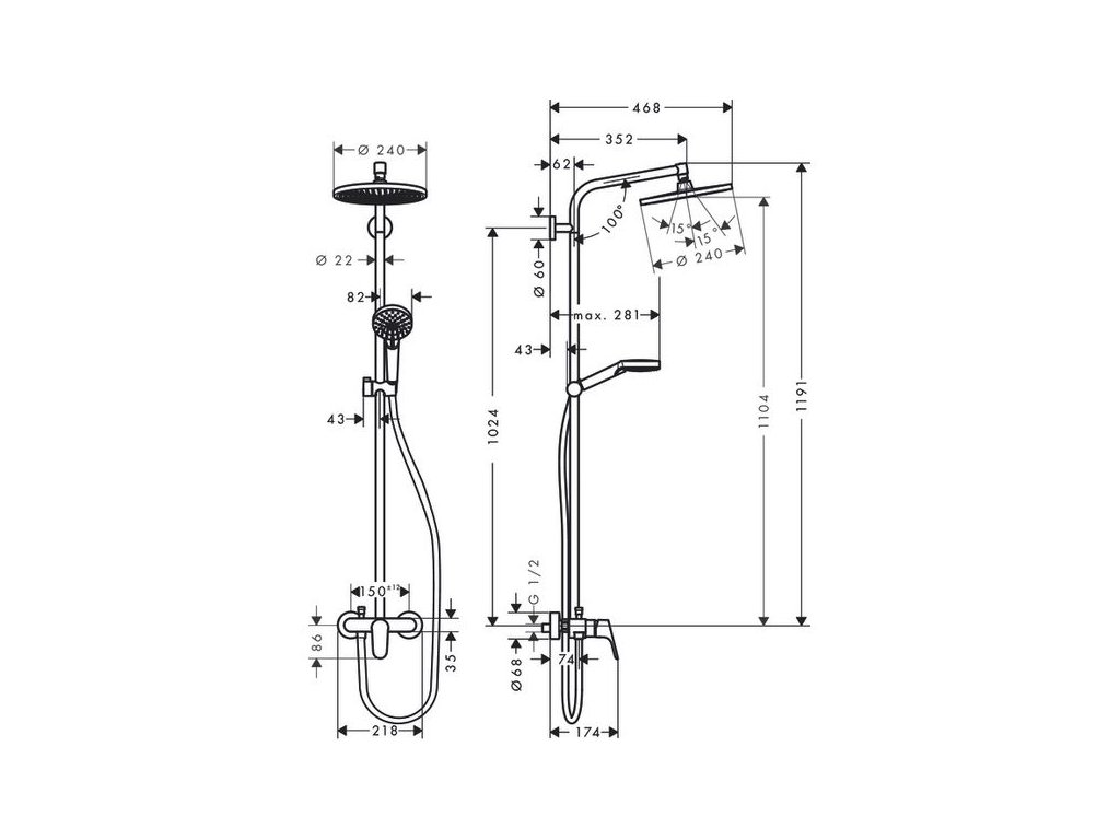 Hansgrohe Crometta S Showerpipe 240 1jet s pákovou baterií 27269000