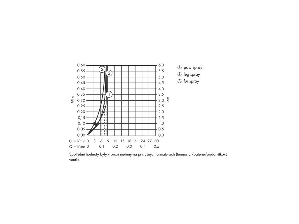 - maximální průtok při 0,3 MPa: 7,6 l/min