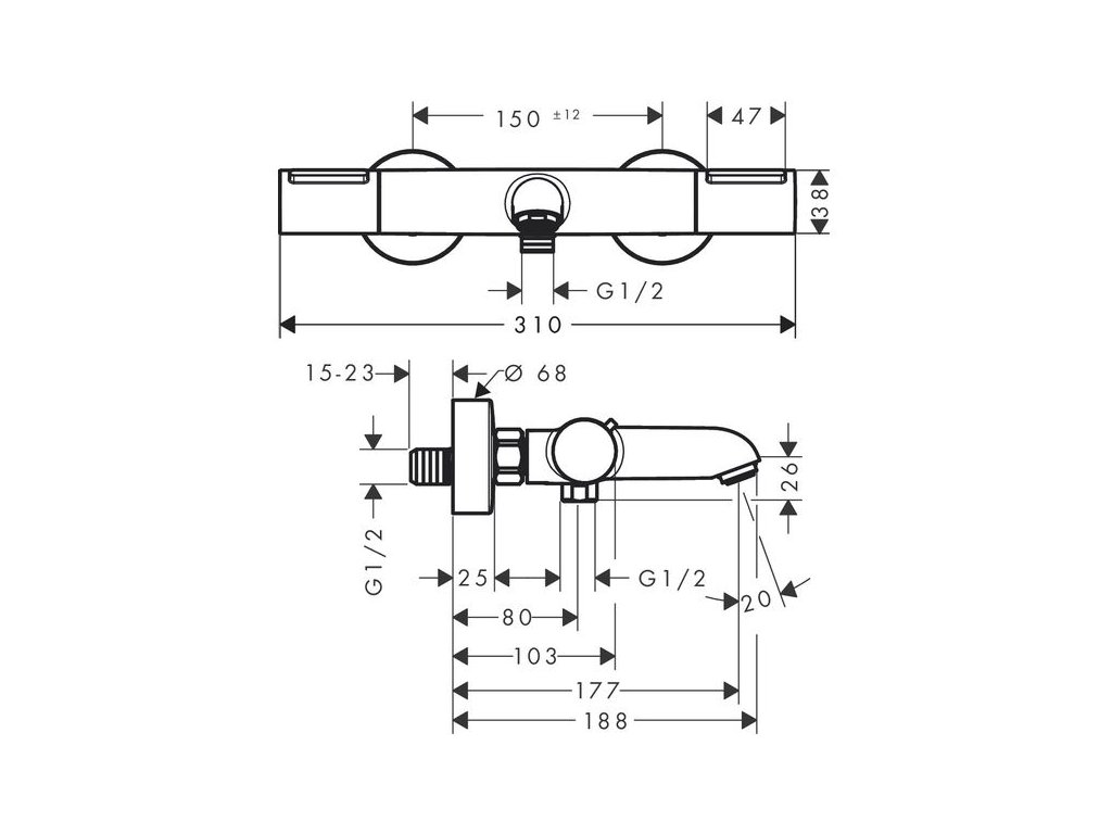 - rozteč: 150 mm ± 12 mm