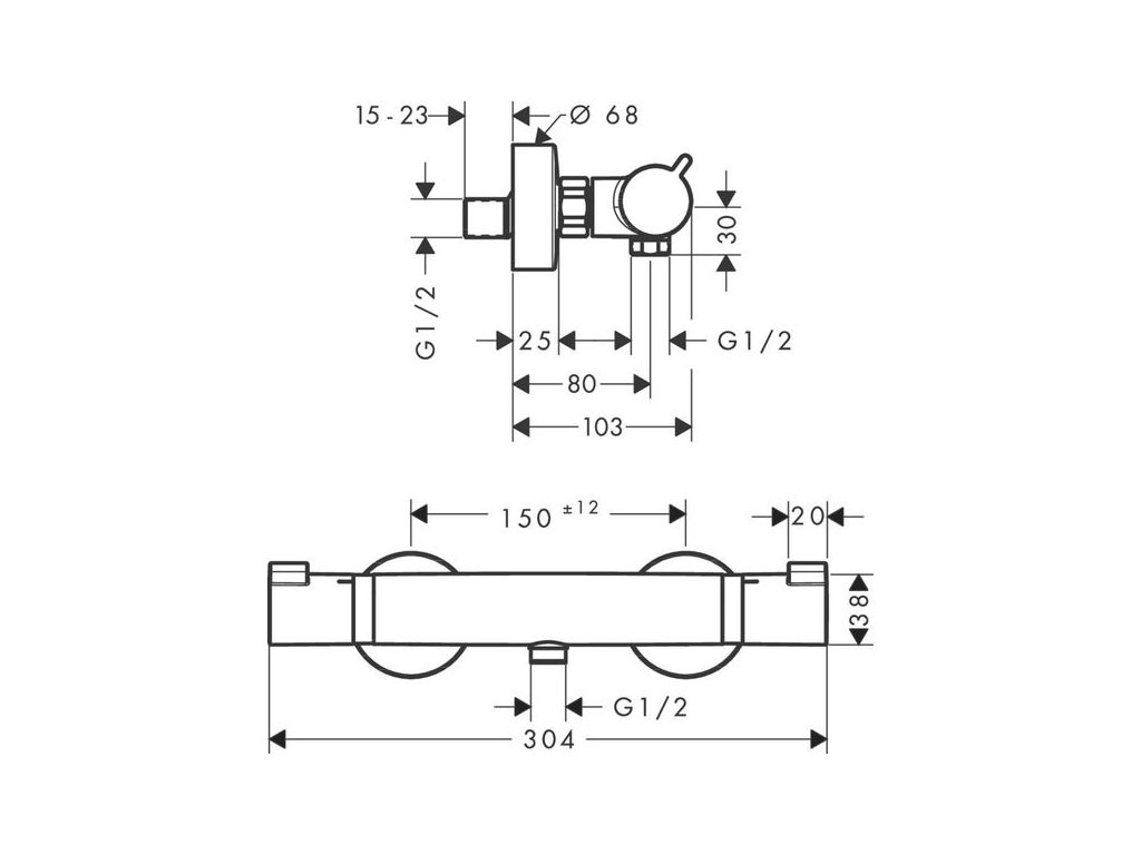 - rozteč středů: 150 mm ± 12 mm