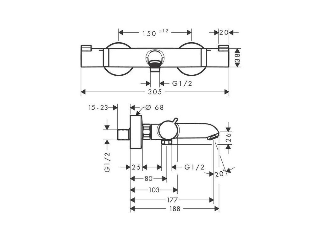 - rozteč středů: 150 mm ± 12 mm