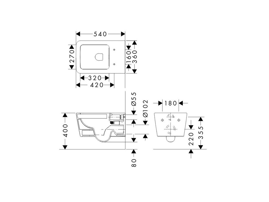 Hansgrohe EluPura Q WC závěsné 54 cm AquaFall, bílá HygieneEffect 62022450