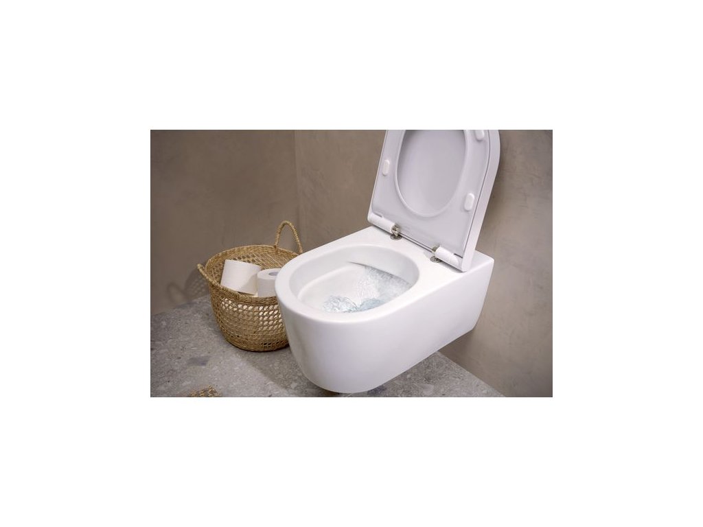 - AquaFall Flush: silný vodní proud a design bez splachovacího okraje
