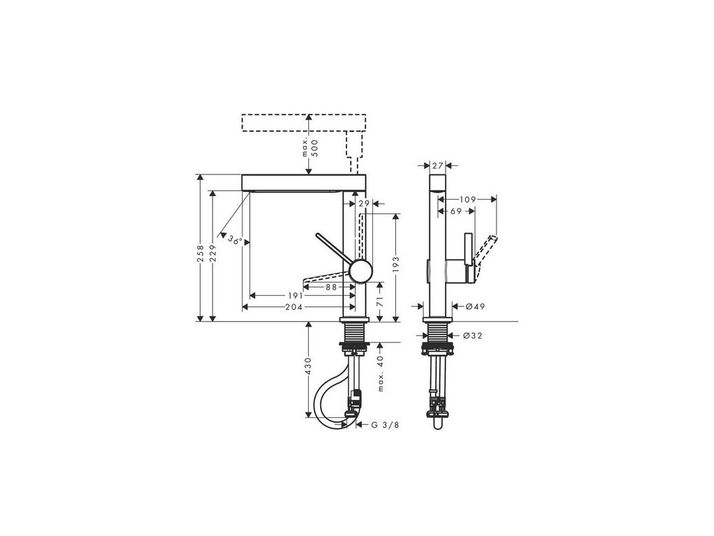 - výtok: 191 mm