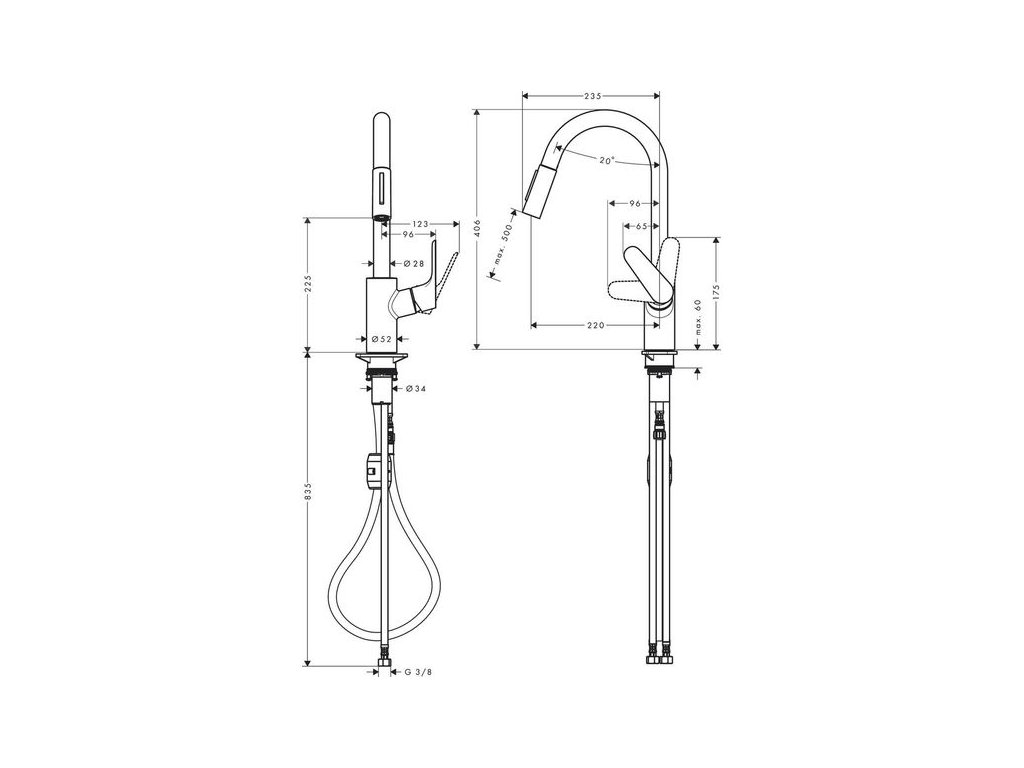 Hansgrohe Focus Baterie dřezová s výsuvnou sprškou, matná černá 31815670
