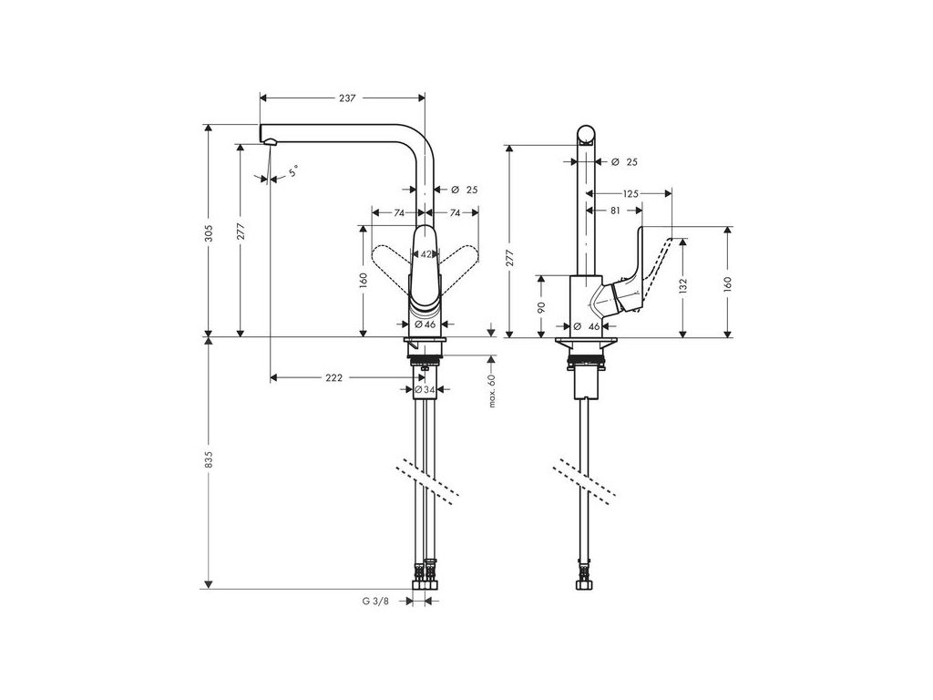 Hansgrohe Focus M41 Baterie dřezová otočná, černá mat 31817670