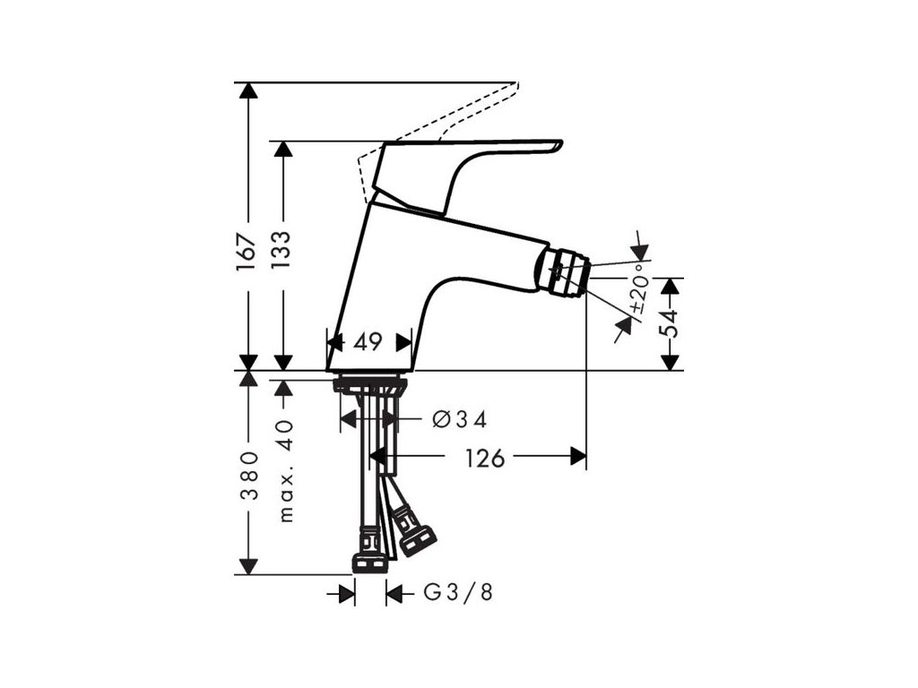 Hansgrohe Focus Baterie bidetová páková s odtokovou soupravou 31922000