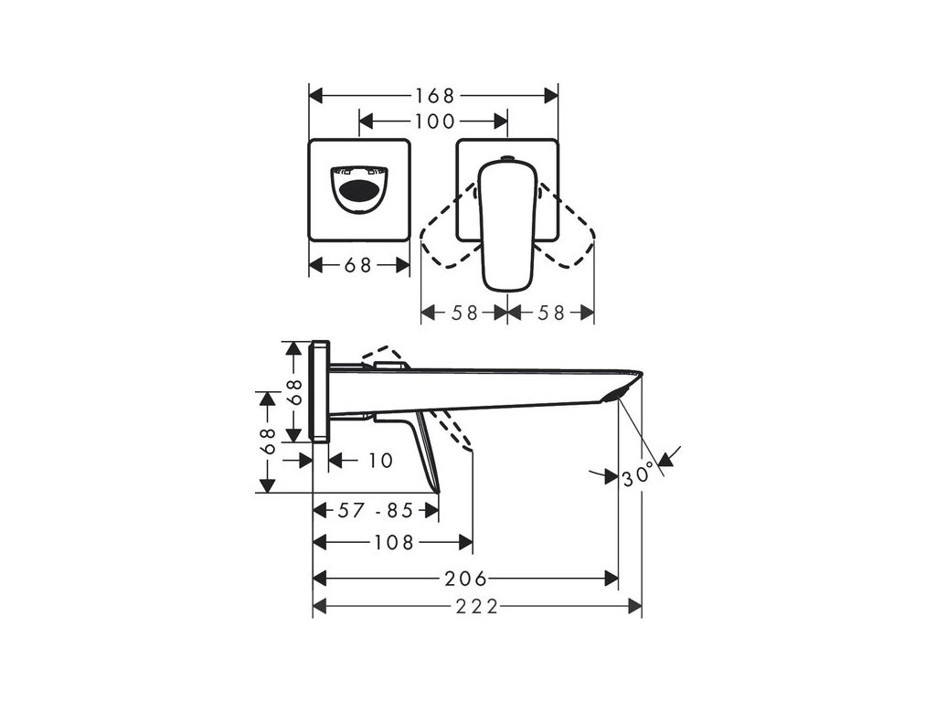 - obsahuje: páková umyvadlová baterie nástěnná pod omítku, odtoková souprava