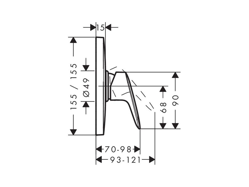 Páková sprchová baterie HighFlow pod omítku. K baterii je nutné dokoupit podomítkové těleso zvlášť.