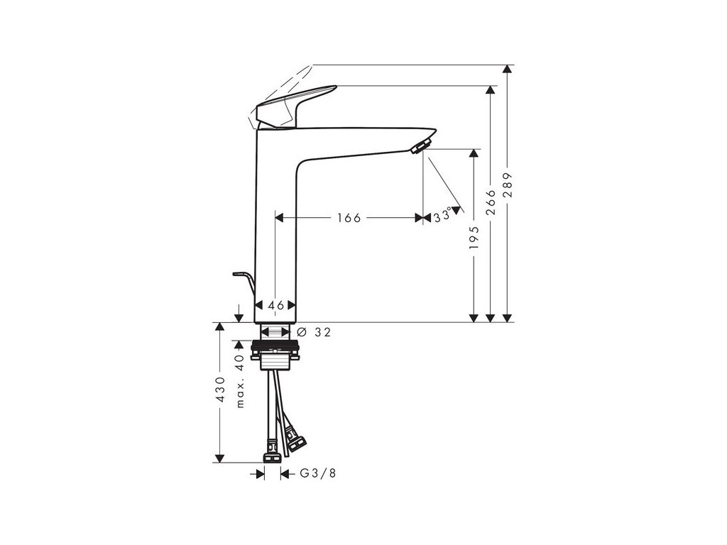 - obsahuje: páková umyvadlová baterie, odtoková souprava - táhlo