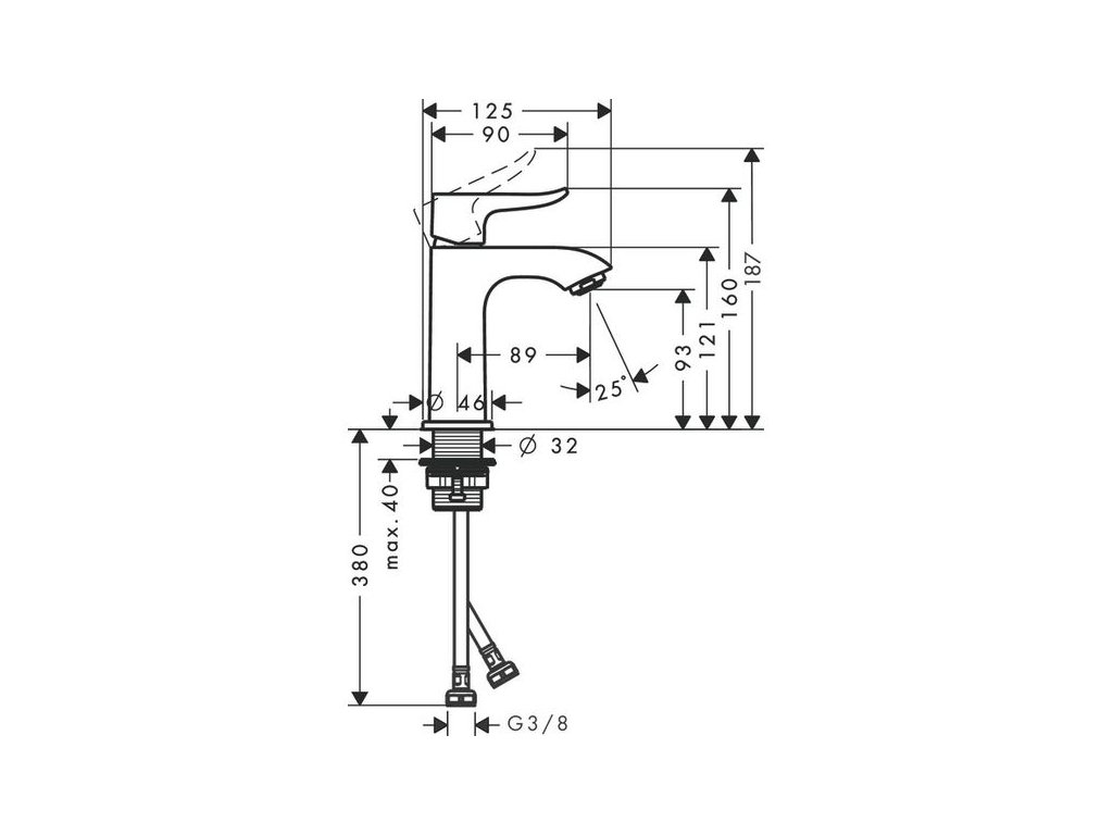 - součásti dodávky: páková umyvadlová baterie, přívodní hadice, upevnění dříku, montážní návod