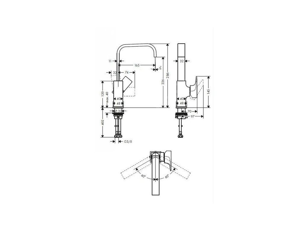 - pozice páky na boku - není vhodné pro umývadlové mísy