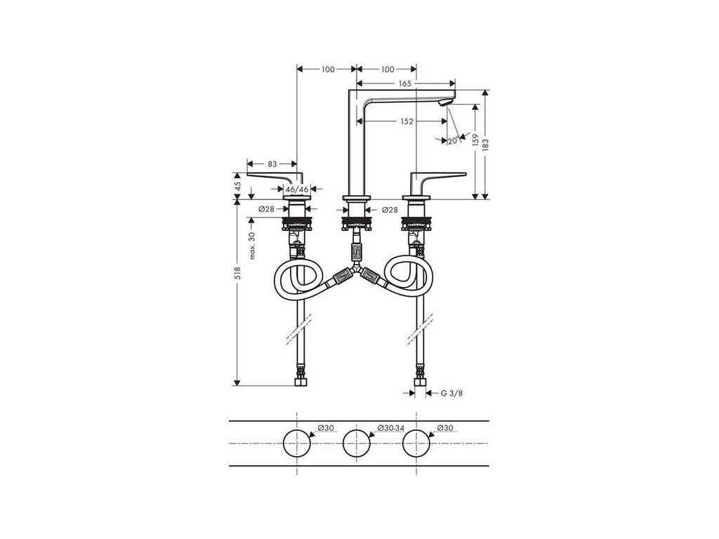 Hansgrohe Metropol Baterie umyvadlová 3-otvorová s plnými pákami 32515000