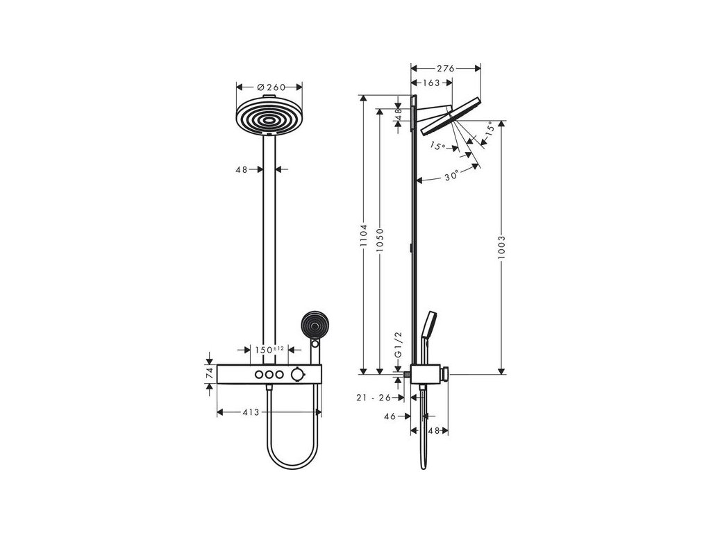 - velikost sprchové hlavice horní sprchy: 260 mm