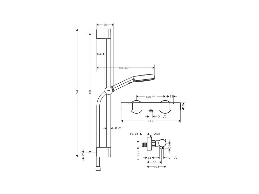 - obsah balení: ruční sprcha, sprchový termostat, sprchová tyč, jezdec, sprchová hadice