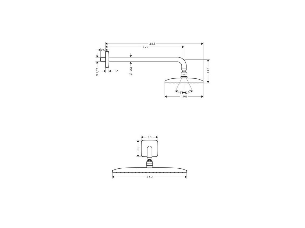 - velikost sprchové hlavice: 360 x 190 mm