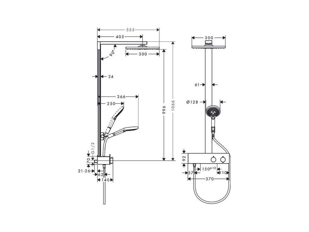 - velikost sprchové hlavice horní sprchy: 300 x 300 mm