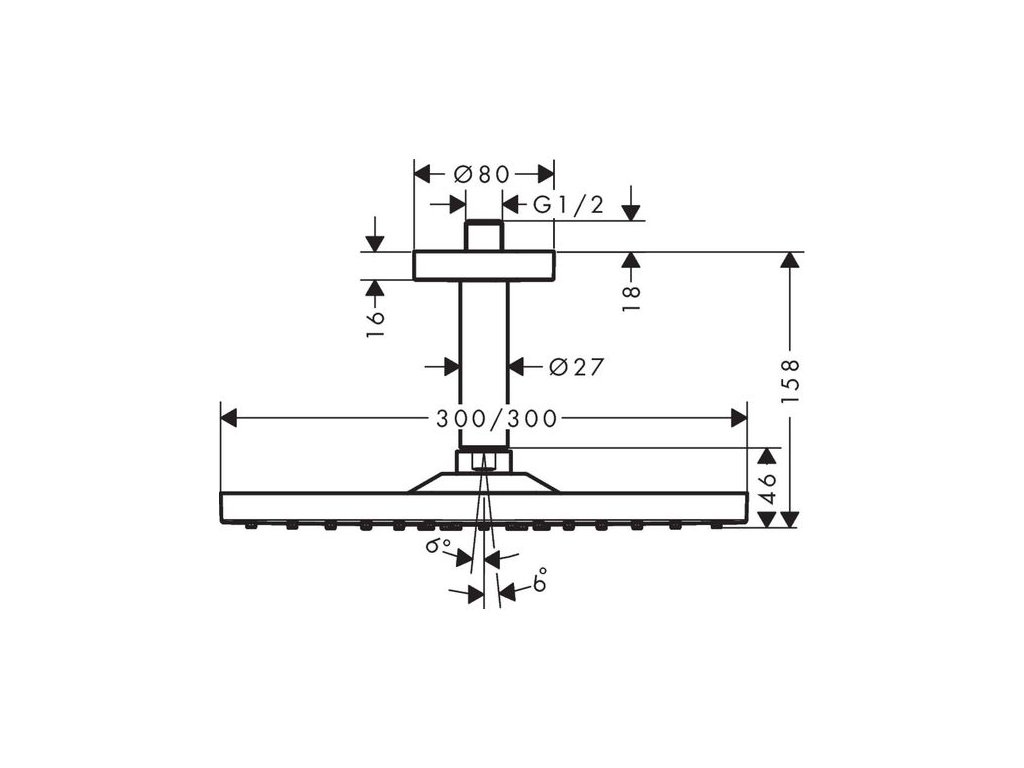 - velikost sprchové hlavice: 300 x 300 mm