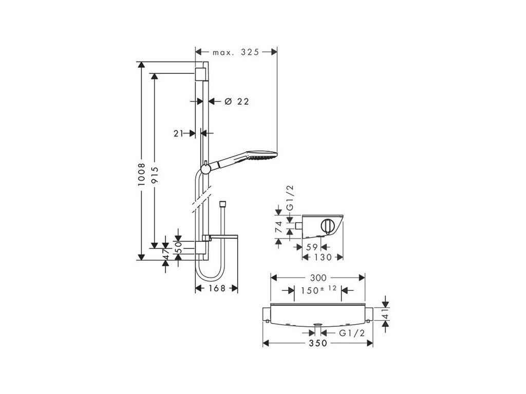 - obsahuje: ruční sprcha, sprchový termostat, sprchová tyč, jezdec, miska na mýdlo, sprchová hadice