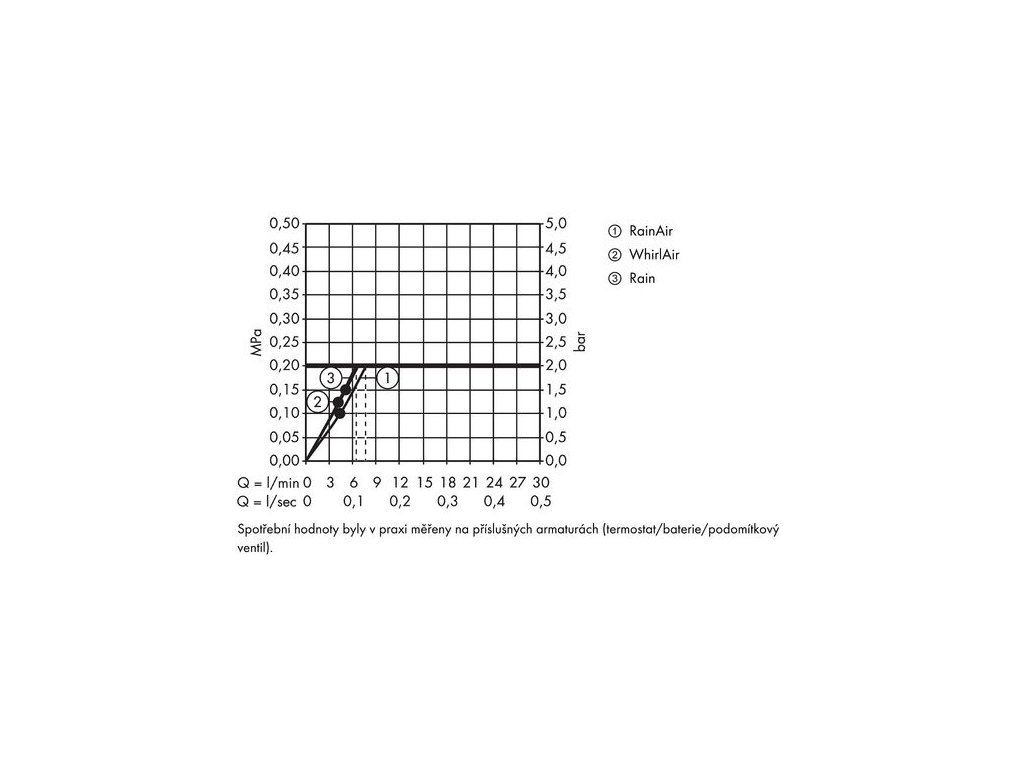 - min. průtokový tlak: 1,5 bar
