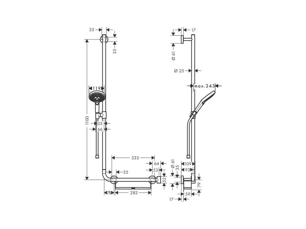 - obsahuje: ruční sprcha, sprchová tyč, polička, sprchová hadice, jezdec