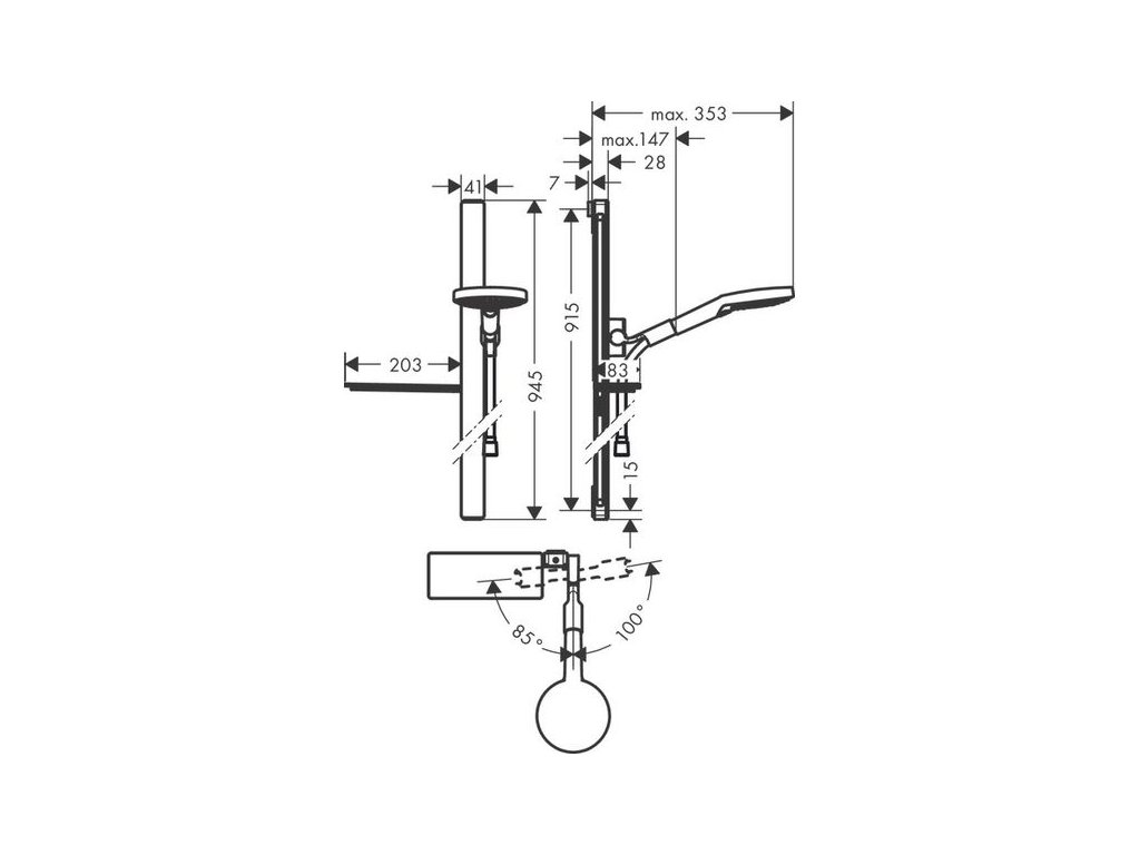 - obsahuje: ruční sprcha, sprchová tyč, sprchová hadice, jezdec, odkládací polička