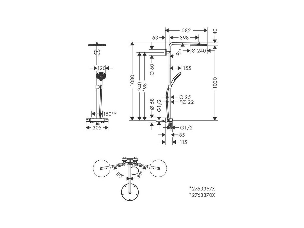 - obsahuje: horní sprcha, ruční sprcha, sprchový termostat, sprchová hadice, jezdec, sprchová tyč