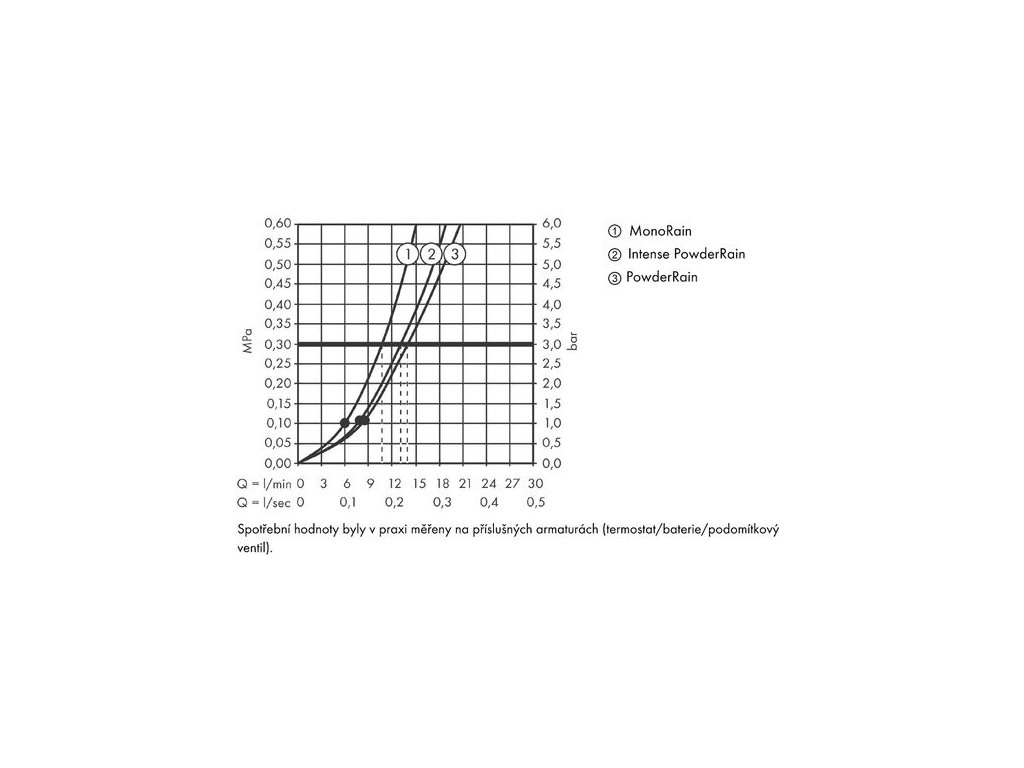 - minimální průtokový tlak: 1,1 bar