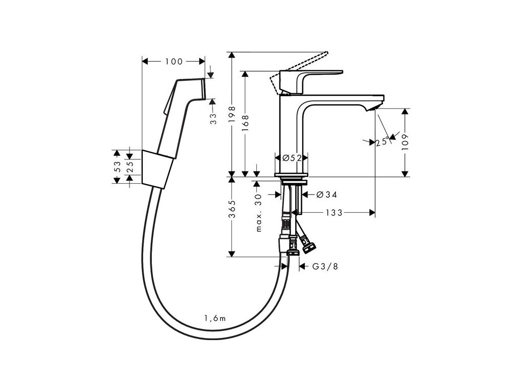 - obsah balení: páková umyvadlová baterie, bidetová ruční sprcha, držák sprchy, sprchová hadice