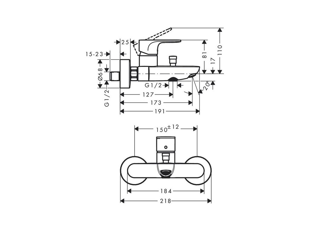 - rozteč středů: 150 mm ± 12 mm