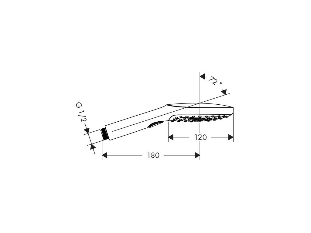 Moderní plochou ruční sprchu se zaoblenými rohy sprchového disku lze kombinovat s jakoukoli baterií a vzorem obkladů. Tlačítko přepínající jednotlivé proudy jde díky ergonomii rukojeti snadno obsluhovat jedním prstem.