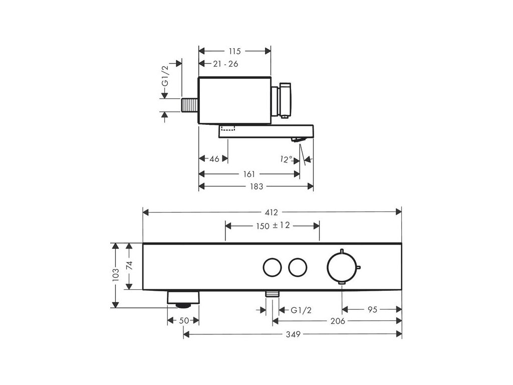 - vzdálenost středu: 150 mm ± 12 mm