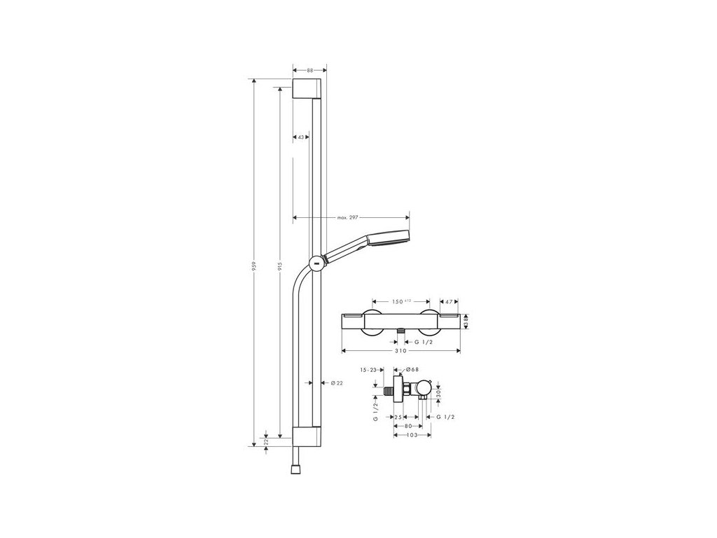 Hansgrohe Sprchový set s termostatickou baterii Eco a tyčí 90 cm, chrom 24261670