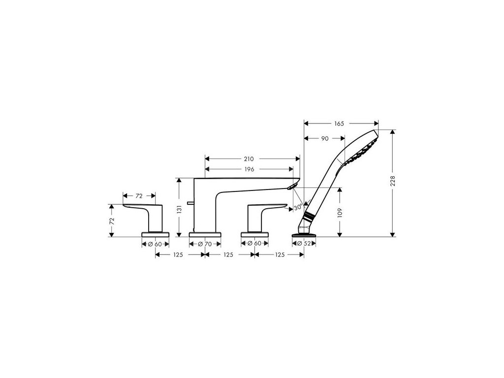 - obsah balení: 4otvorová baterie na okraj vany, ruční sprcha