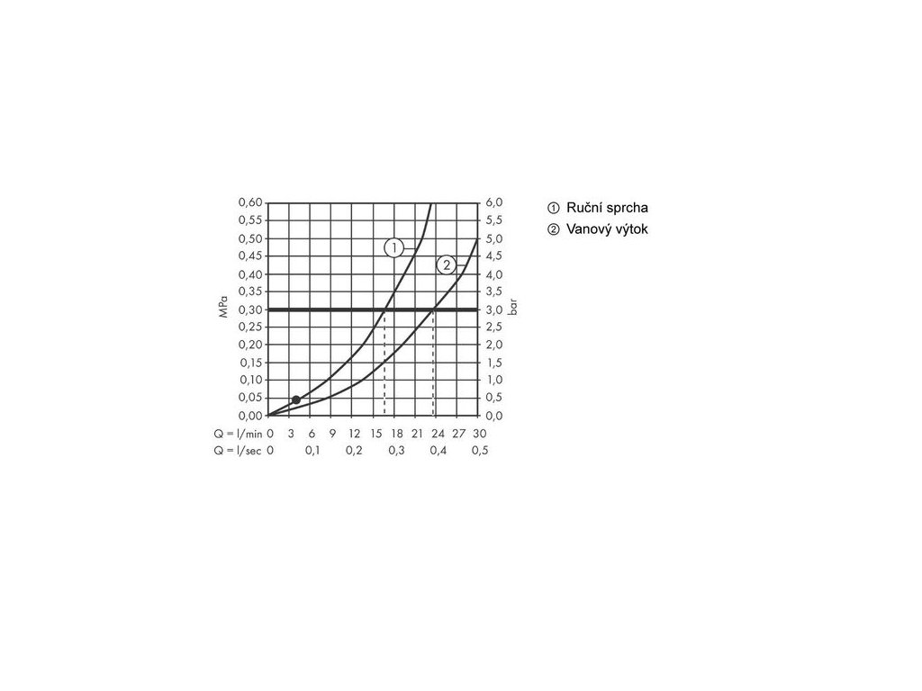 - průtok pro vanový výtok při 3 barech: 23,8 l/min