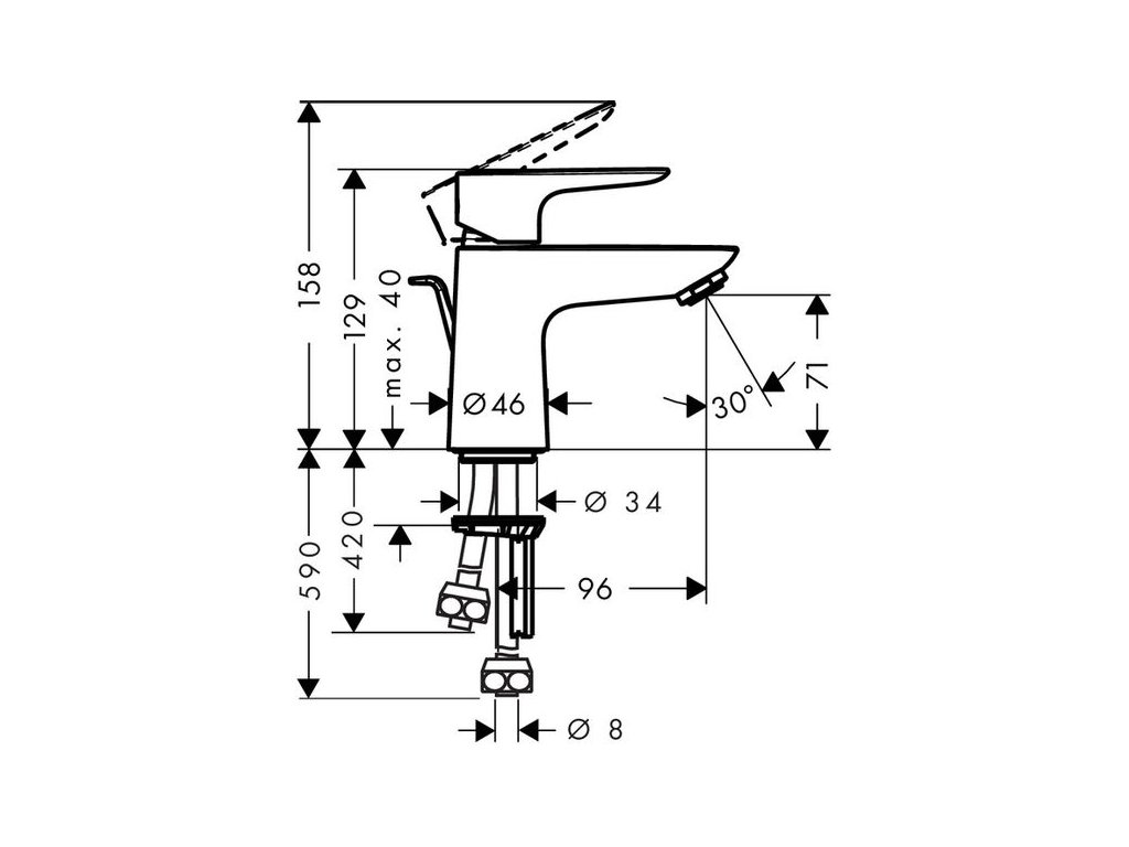 Hansgrohe Talis E Baterie umyvadlová pro beztlakové ohřívače, s výpustí - táhlo, chrom 71707000