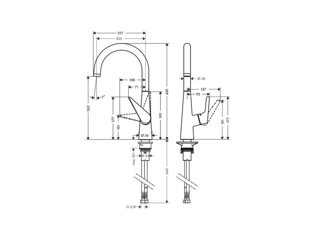Hansgrohe Talis M51 Baterie kuchyňská páková 260, 72810000