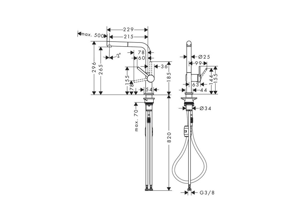 Hansgrohe Talis M54 Baterie dřezová, stojánková s vytahovací koncovkou, nerez 72808800