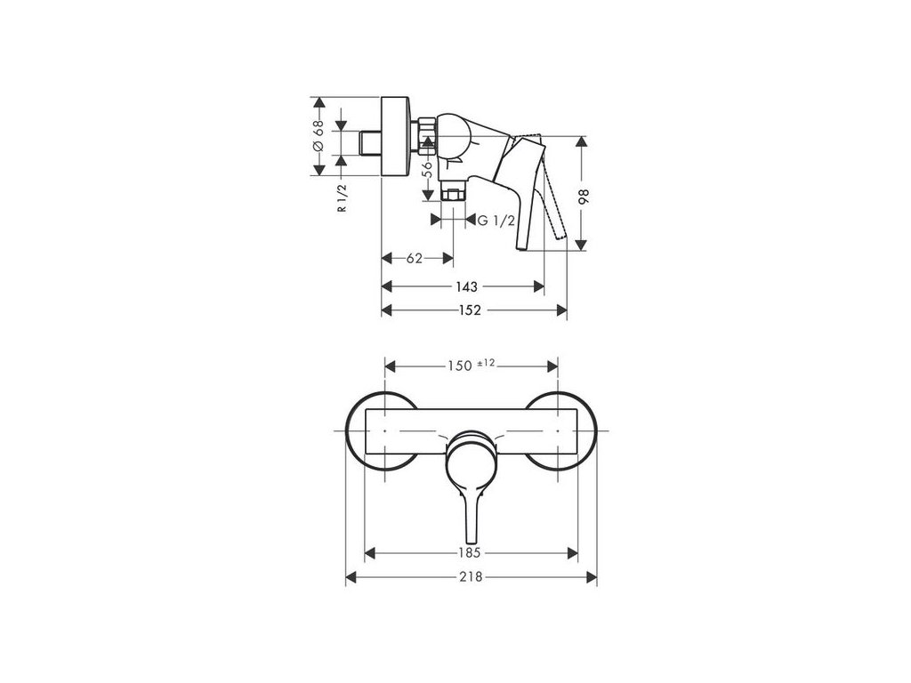 - rozteč středů: 150 mm ± 12 mm