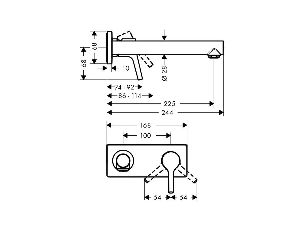 - páková umyvadlová baterie pod omítku, pro montáž na stěnu
